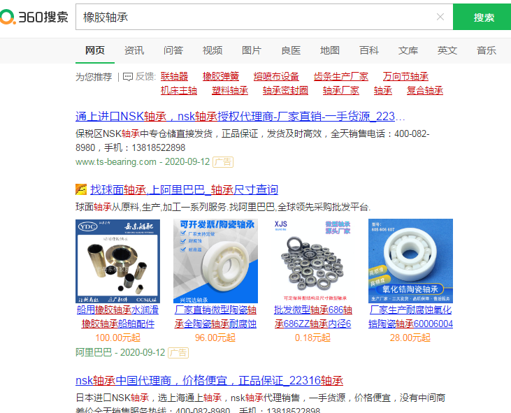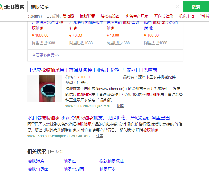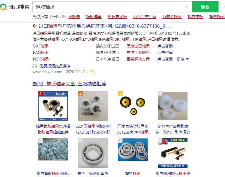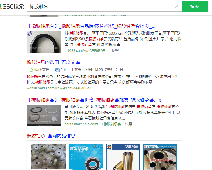 今天****家井機械配件廠和您分享一下橡膠軸承在360搜索上的排名